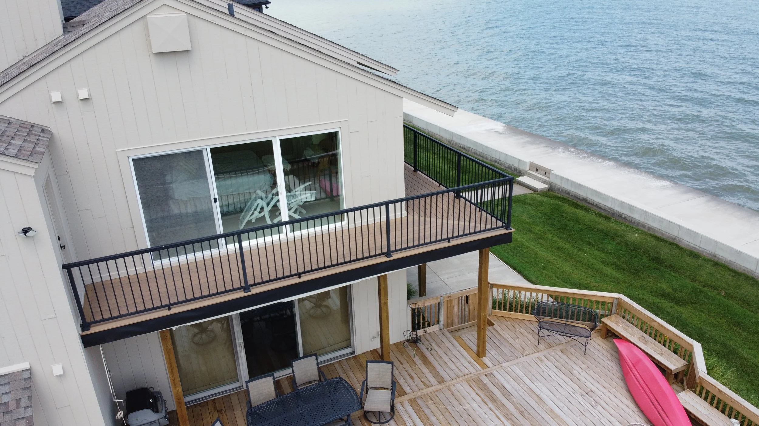 Finish: After decking is installed we put up railings, stair lights, deck skirting, etc. A final clean up also occurs during this final stage.